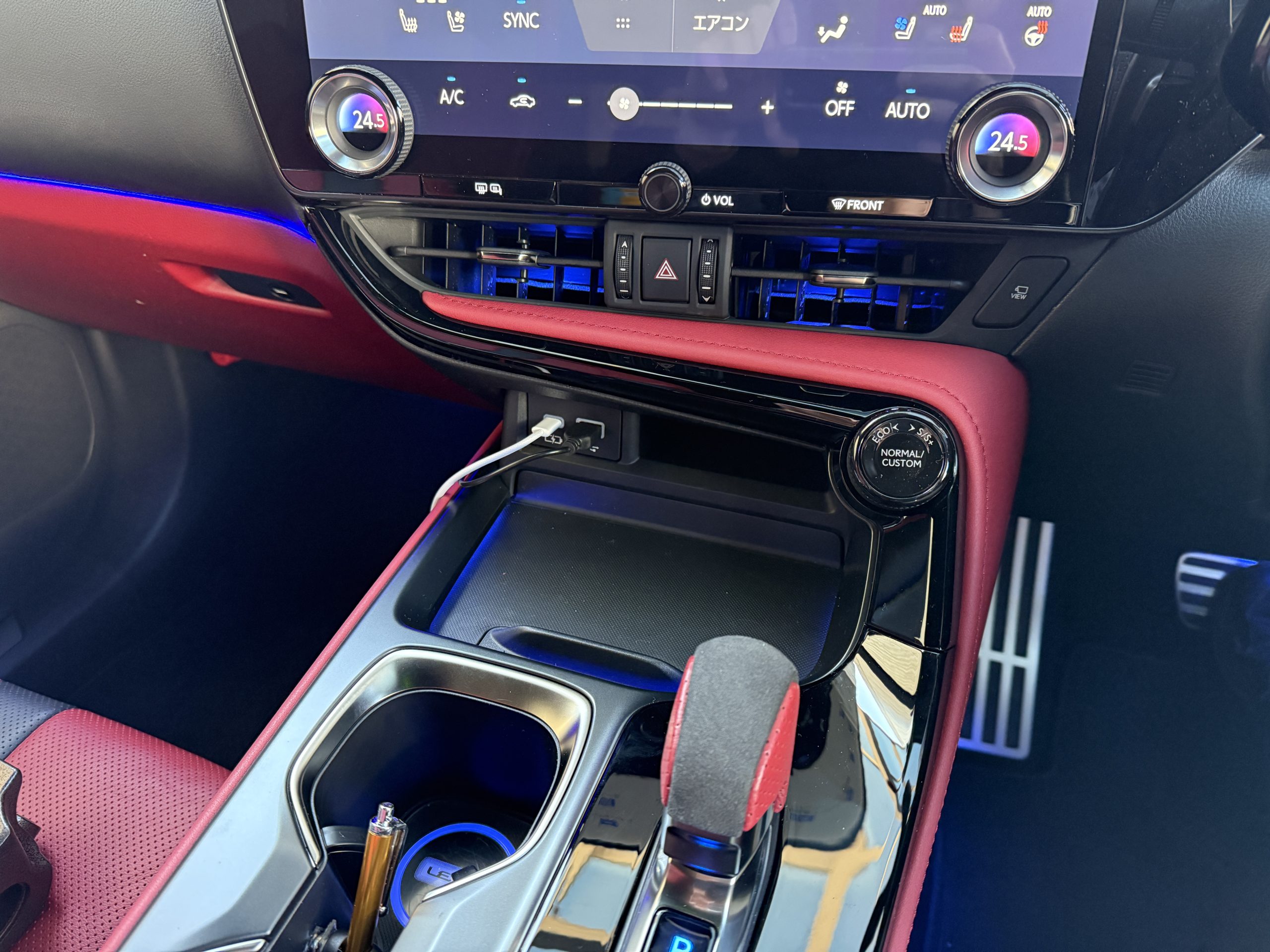 本日はレクサスNXに下記施工をさせていただきました。・ステアリングエンブレムイルミ(マルチカラー)・エアコンダクトイルミ・後席フットイルミ