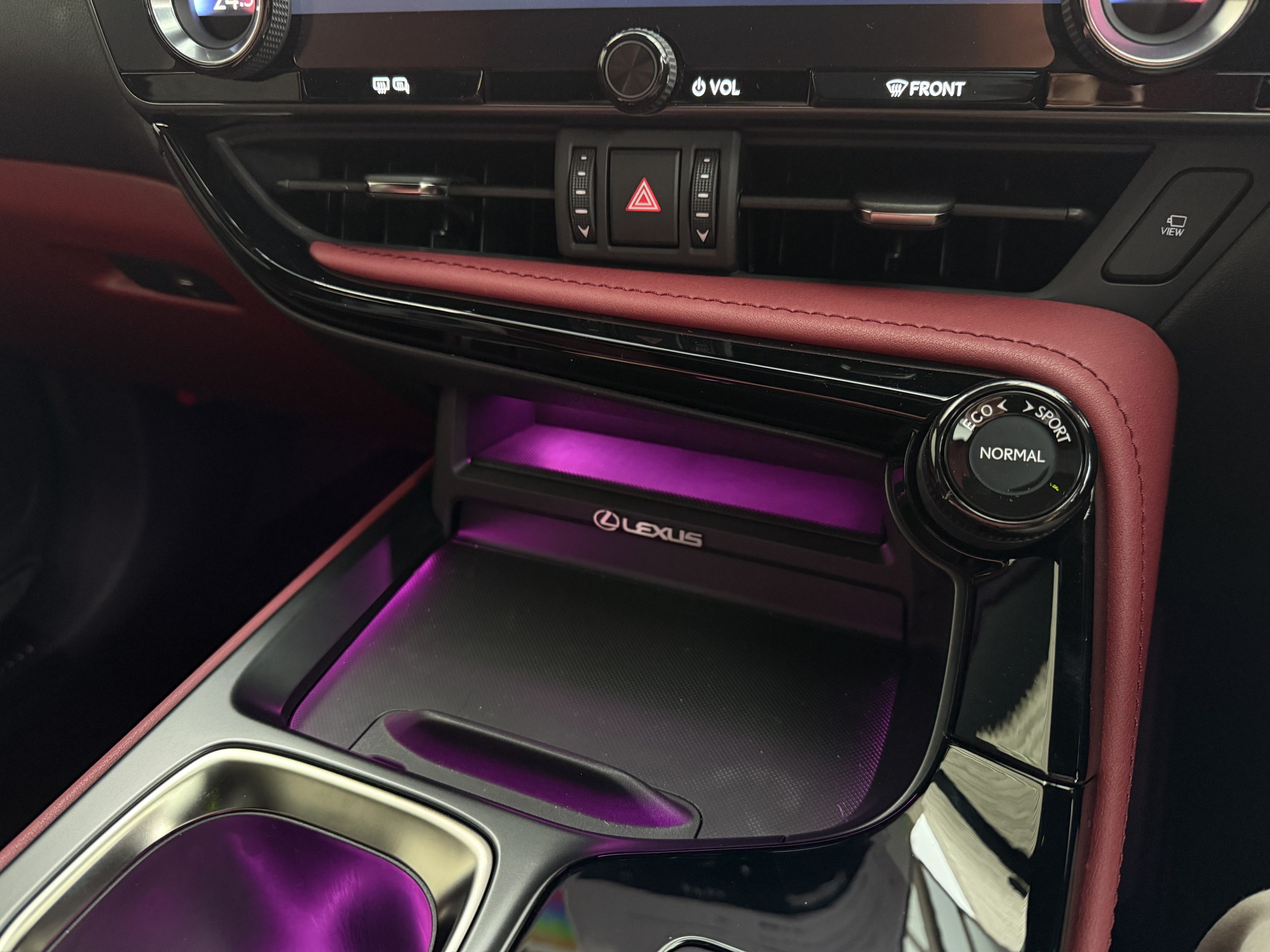 NXでは初となります。レクサスRX2025年年次改良風のセンタートレイイルミの増設です。点光源では見栄えが微妙だったので採用しておりませんでしたが、RXのセンタートレイイルミのライン化が良かったのでNXにも採用させていただきました。