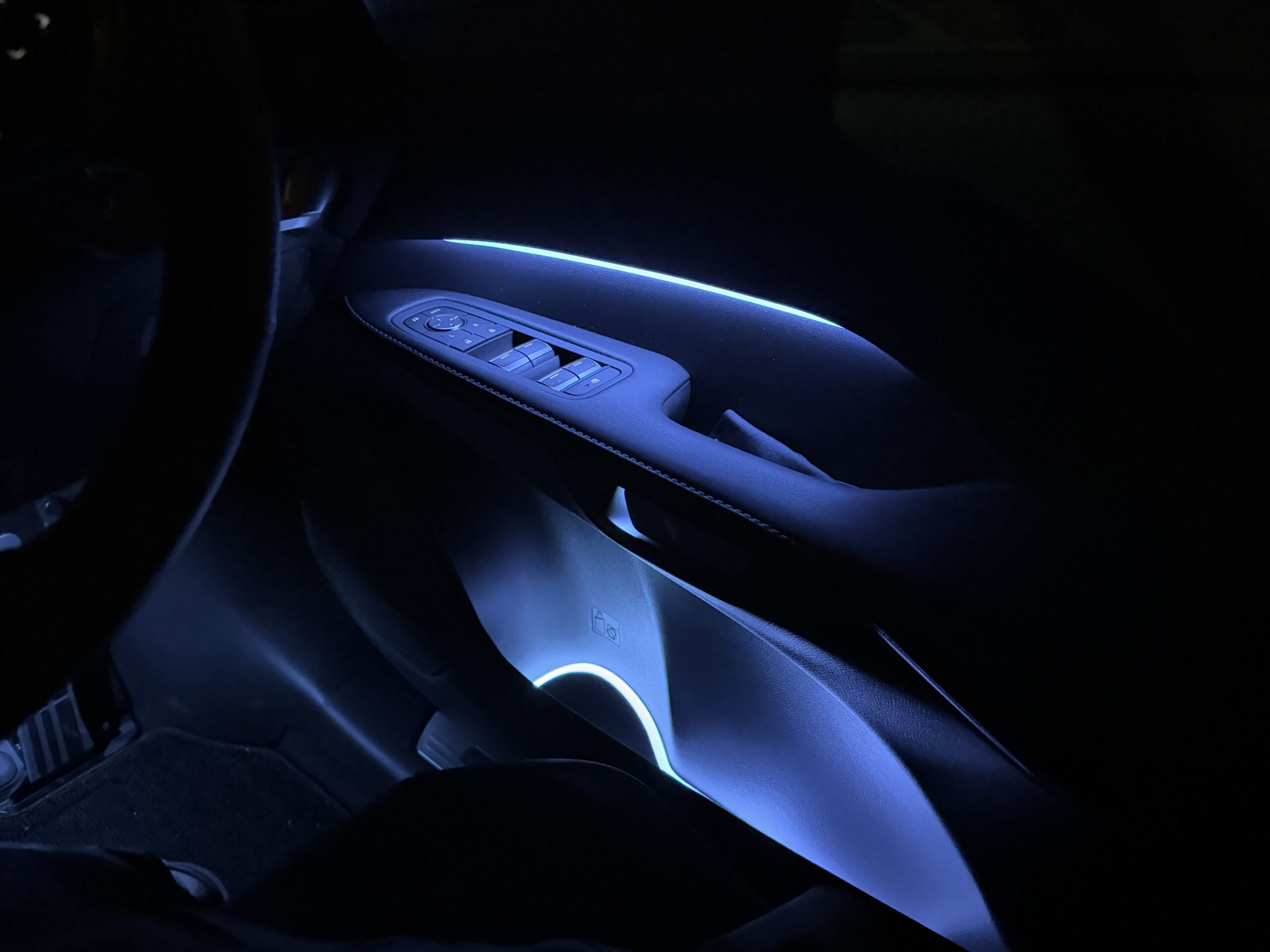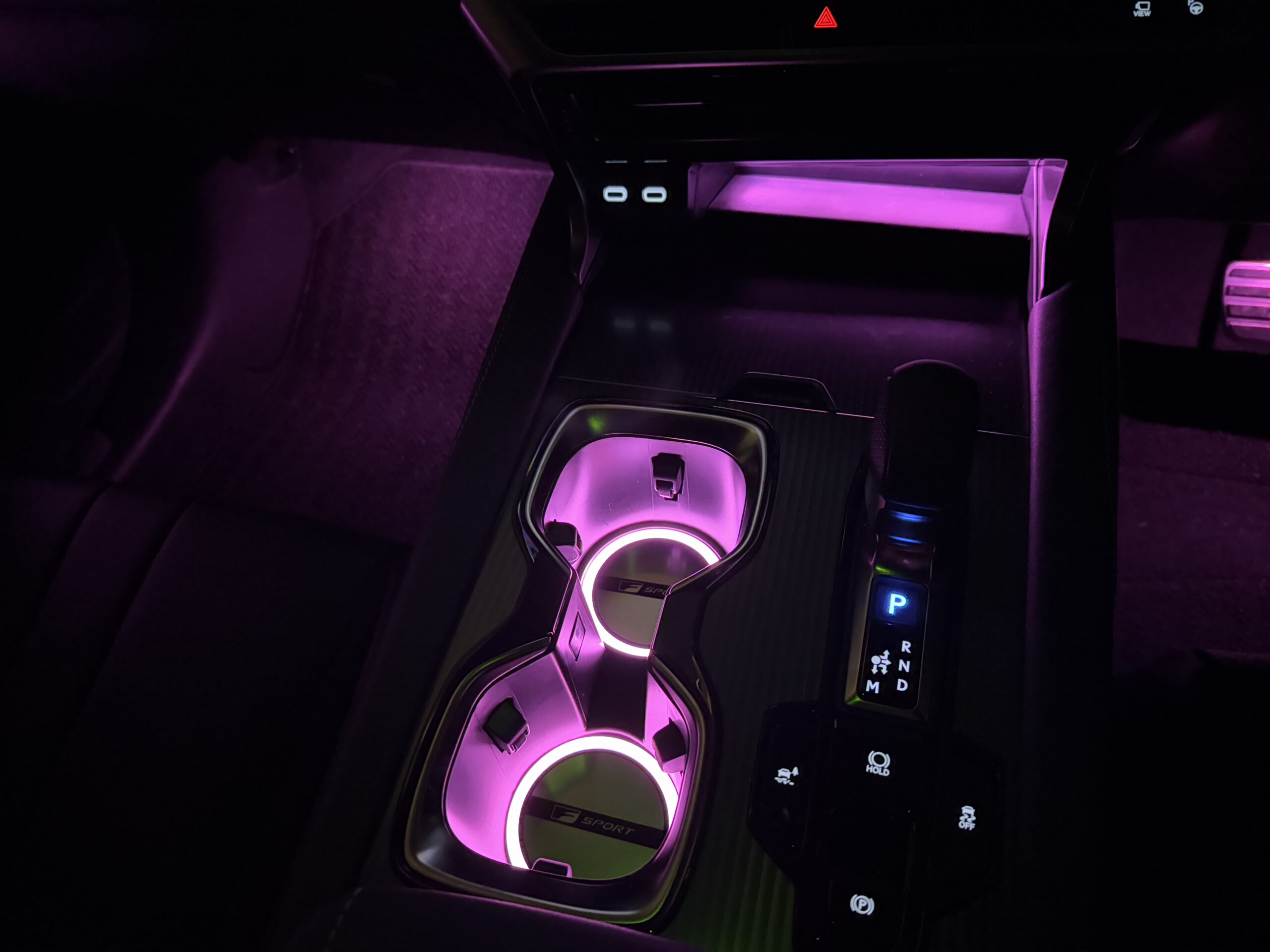 年次改良RXのアンビエントライト増設です。・カップホルダーイルミ・サイドドアイルミ・ドアポケットイルミVer.2・後席フットイルミ・ステアリングエンブレムイルミ(マルチカラー)・ホーンパッドレザー貼り・TVキャンセラー取付