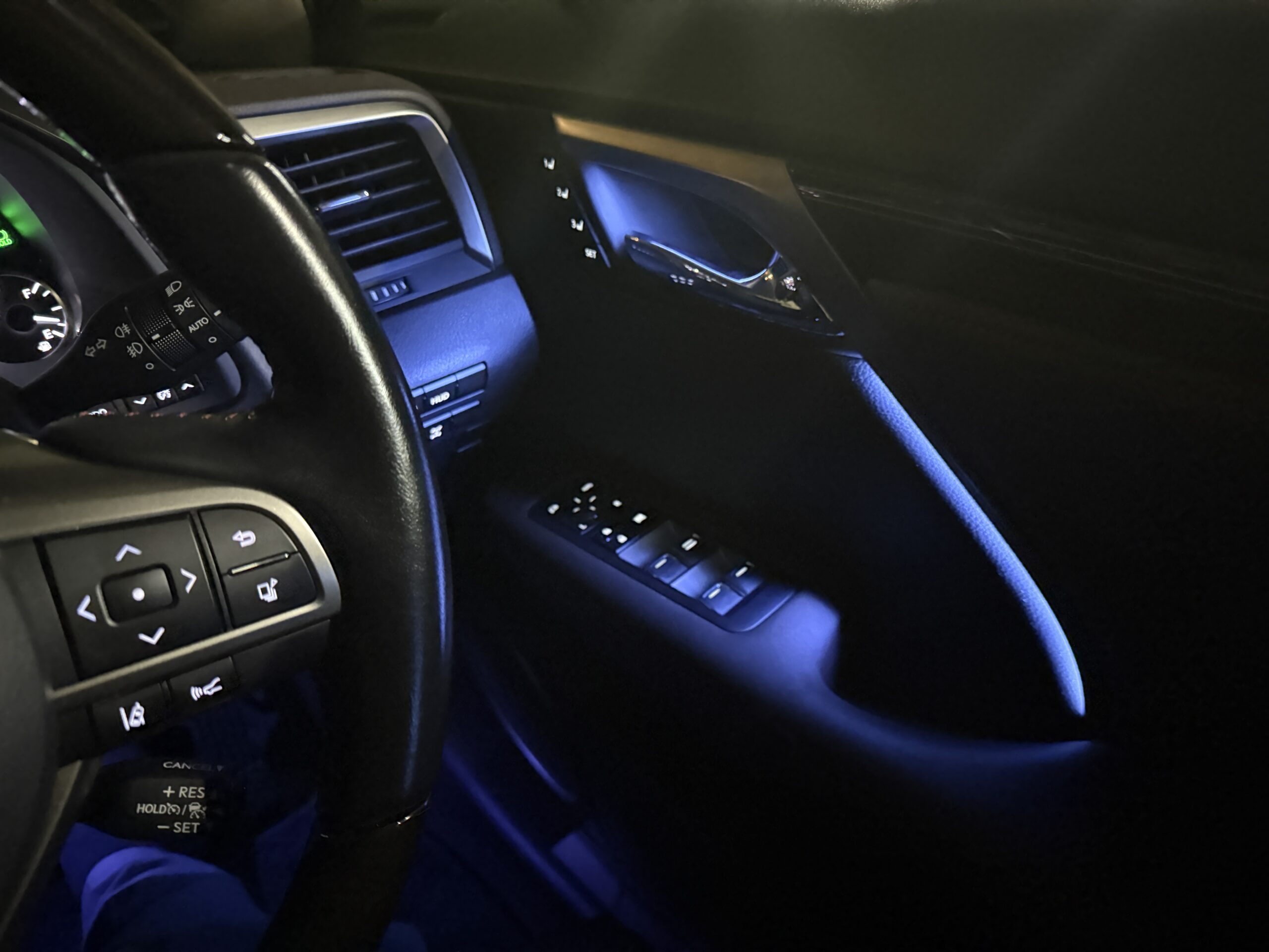 光量アップと増設を施工させていただきました。・ドア+ダッシュボードアンビエントライト光量アップ・カップホルダーイルミ・前席フットイルミ光量アップ・後席フットイルミ
