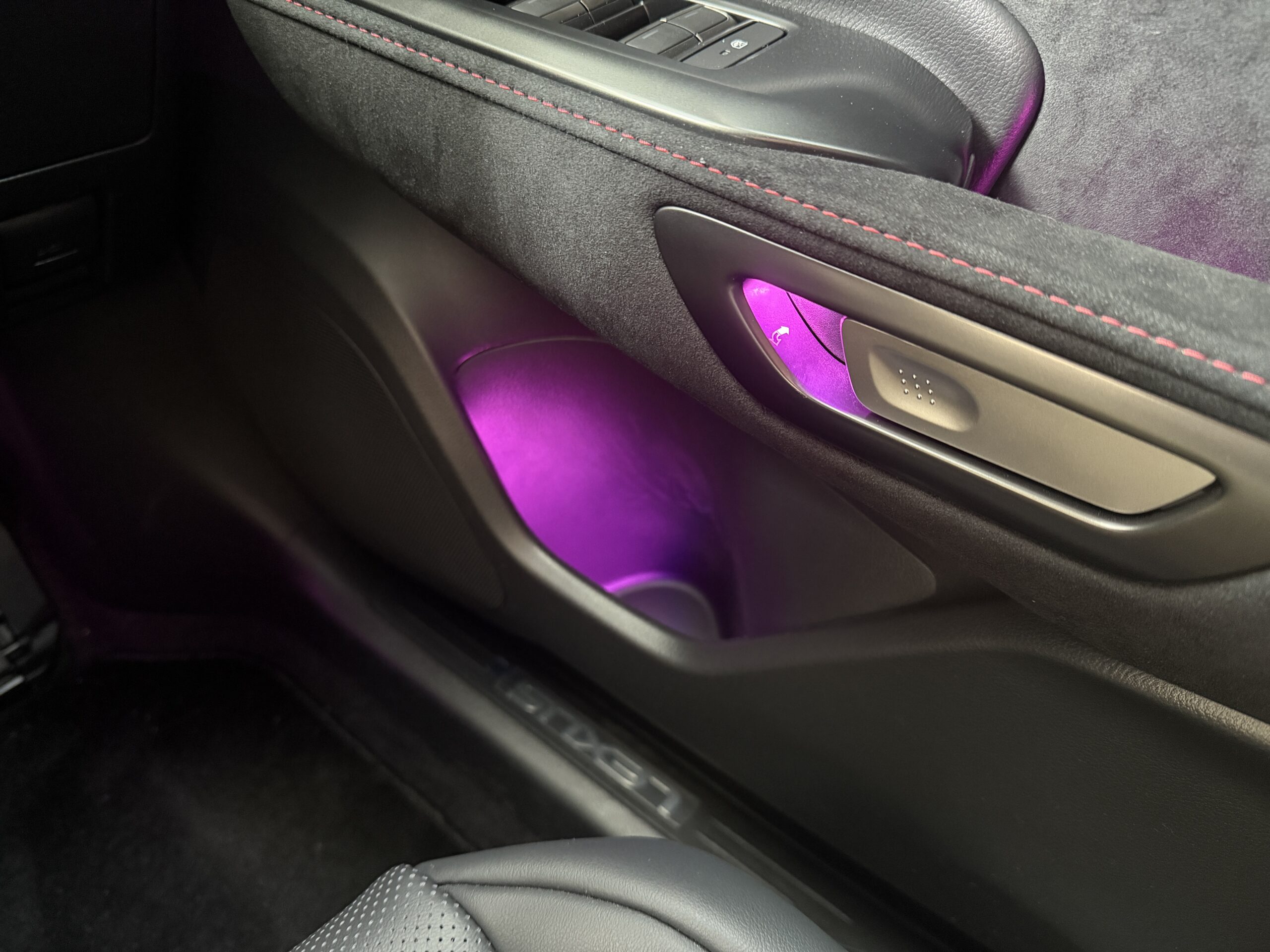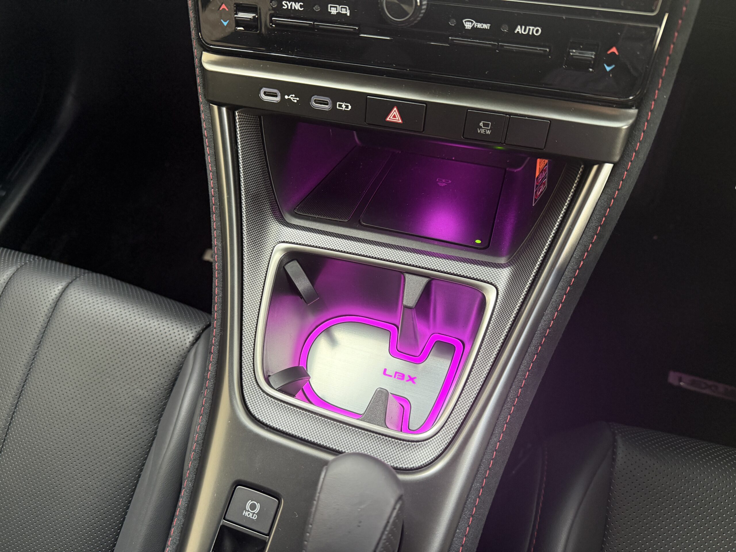 レクサスLBX MORIZO RR 光量アップ改良後の車両です。・カップホルダーイルミ・ドアポケットイルミVer.1・eラッチイルミ・ステアリングエンブレムイルミ・ホーンパッドレザー貼り・センターコンソールイルミ・後席フットライト